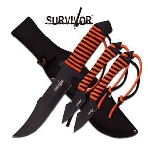 Survivor "Autumn Sky" Orange Fixed Blade Knife 3 Pc Set.